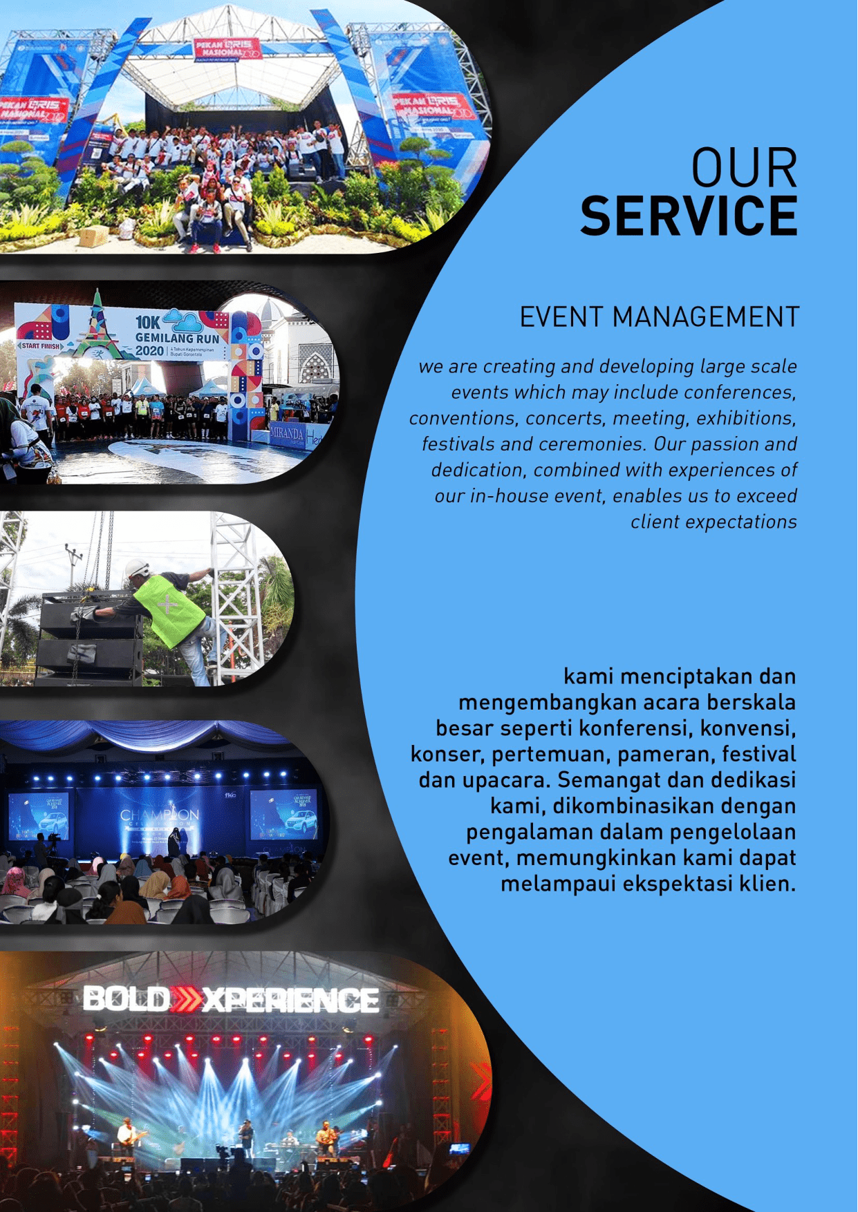 RIZ Production dan Event Organizer merupakan penyedia Sound System, Lighting, LED Multimedia, Rigging Stage terlengkap, serta jasa Event Organizer terbaik yang membuat Event anda menjadi Sempurna.